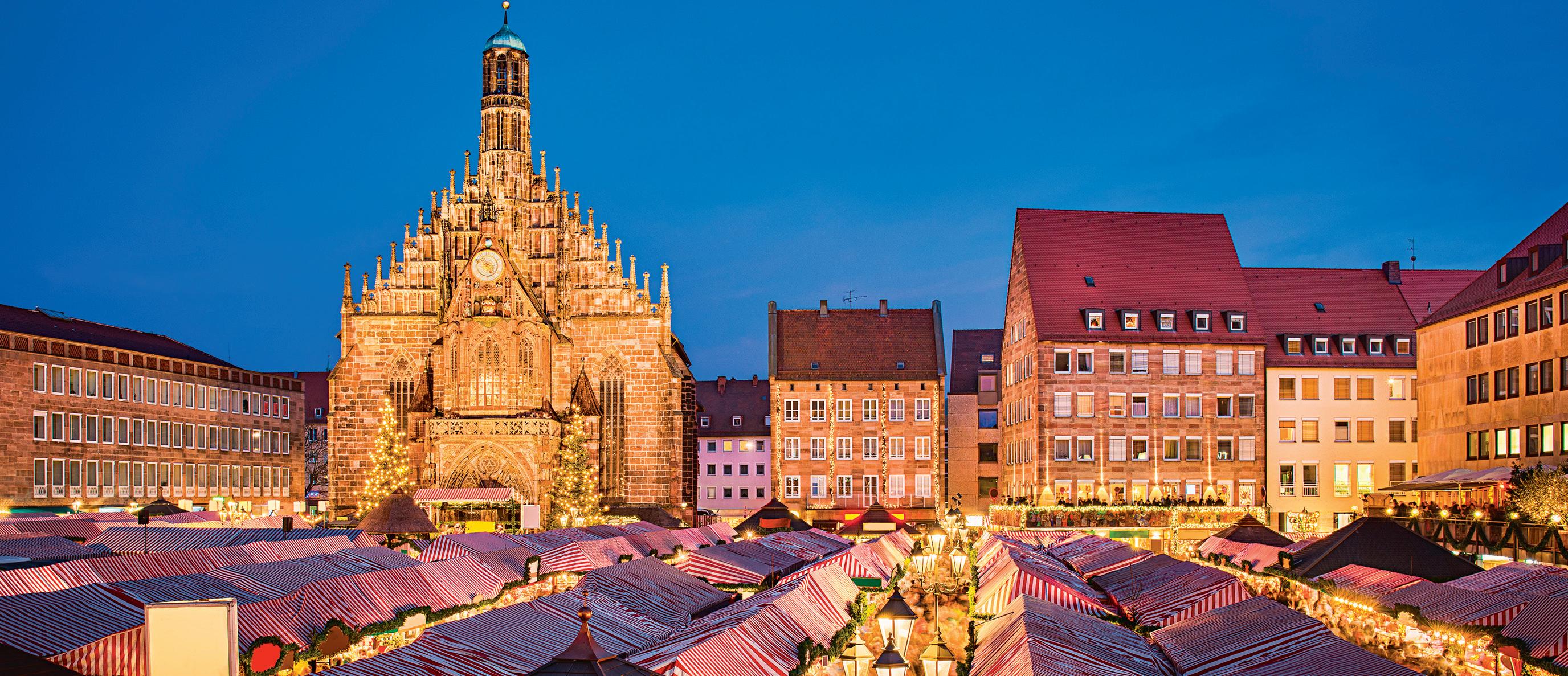 Nuremberg’s Gothic Church of our Lady rises above the city’s famous Christmas market.