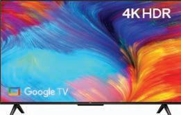 2pc TCL Combo Only $1,499.99 Wkly $16.73 Total Credit Price $2,174.99 2PC COMBO Reason #146 Entertainment for everyone! Combo Includes: • 32” FHD Android Smart TV - 1060F9 • 55” 4K LED Google Smart TV - 1081AE TCL 43” 4K LED Google Smart TV Now $799.99 Wkly $8.92 Was $999.99 Total Credit Price $1,159.99 1070EB Save $200 TCL 50” 4K LED Google Smart TV Now $999.99 Wkly $11.15 Was $1,399.99 Total Credit Price $1,449.99 1060F4 Save $400 TCL 55” 4K LED Google Smart TV Now $1,199.99 | Wkly $13.38 Was $1,499.99 | Total Credit Price $1,739.99 1081AE Save $300 TCL 65” 4K LED Android Smart TV Now $1,599.99 | Wkly $17.85 Was $1,999.99 | Total Credit Price $2,319.99 10914C Save $400 65” 4K QLED Google Smart TV Only $2,199.99 | Wkly $24.54 Total Credit Price $3,189.99 10917F Save $400 Reason #93 Free Wall Mount with these advertised TVs (R16001) 55” 4K QLED Google Smart TV Now $1,399.99 | Wkly $15.62 Was $1,899.99 | Total Credit Price $2,029.99 1081BD Save $500 Also Available Also Available 16 | 1,001 Reasons to shop at Courts