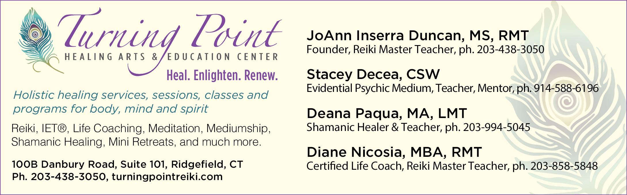Barbara “Bobbi” Soares is a certified sound healing coach and vocal yoga practitioner in New Milford. She is available for concerts and musical performances for gatherings, workshops and community events. Connect at BSoares@LightOfTheNewMoon.com, 860946-9470 or find Hummingbird Sound Yoga on Facebook. See ad, page 5.