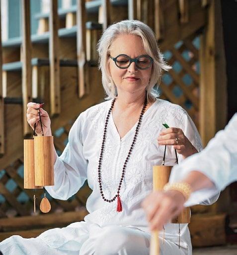 Barbara (Bobbi) Soares, MA, CYT, is a sound yoga and vocal yoga teacher, blues/jazz singer, and Reiki master, certified in several modalities of energy and sound healing. She offers Hummingbird Sound Yoga and sound healing immersions for groups and private sessions. Her goal is to help individuals experience becoming “one with sound” to promote a deep relaxation response that balances energy and encourages healing. See ad, page 5.