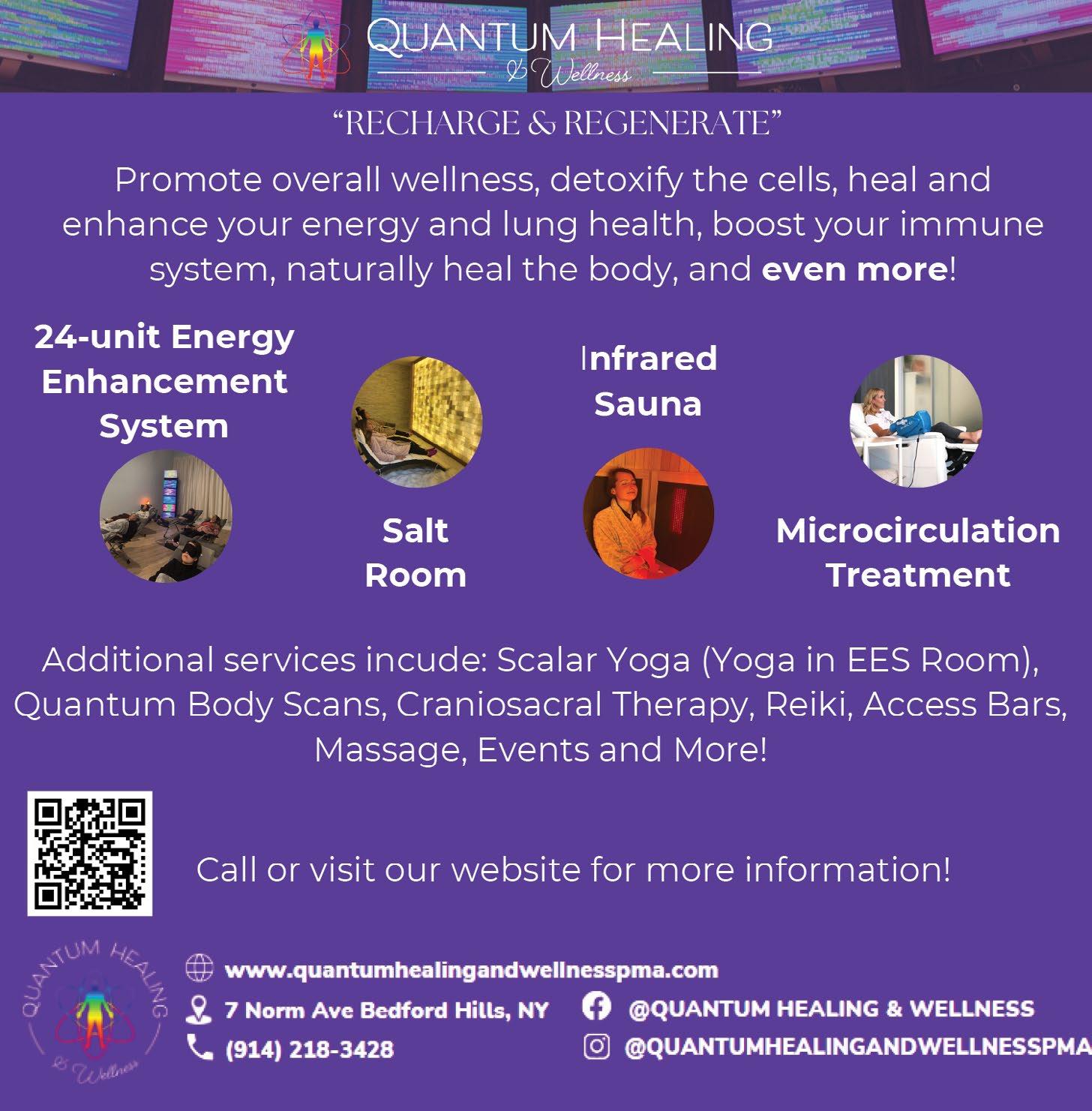 Location: 7-9 Norm Ave., in Bedford Hills. For more information or to make an appointment, call 914-218-3428, email Info@QuantumHealingAndWellnesspma.com or visit QuantumHealingAndWellnesspma.com. See ad, page 15.