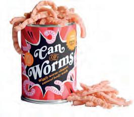 Natural, vegan body wash made in the shape of wiggly worms in a can. 95g.
