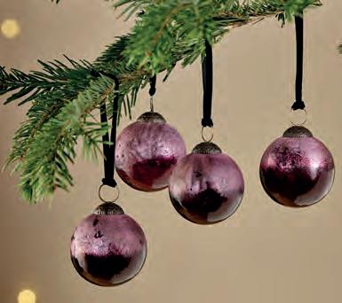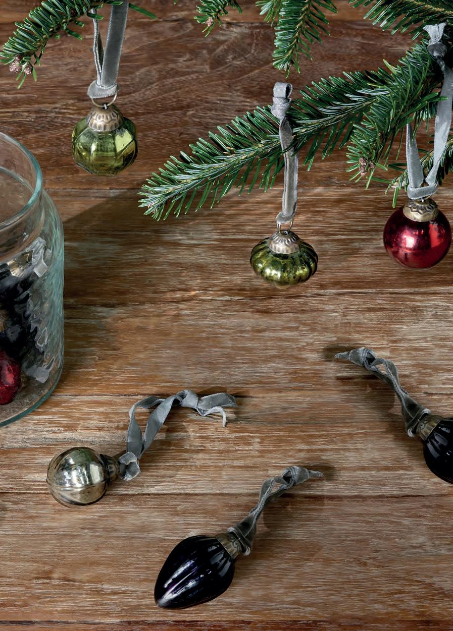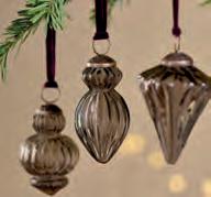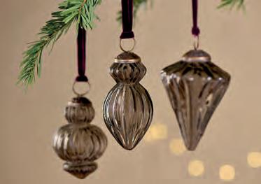 Elegant Christmas decorations, expertly hand crafted in India using recycled glass and finished with luxurious velvet ties to hang.