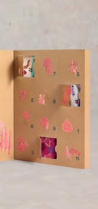12 Day advent calendar filled with organic cotton socks in different delightful patterns. One size. 76% organic cotton, 22% polyamide, 2% elastane.
