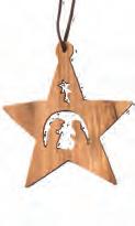 Set of 3 hand carved olive wood Christmas decorations. Approx.6cm. 589913 £12.95