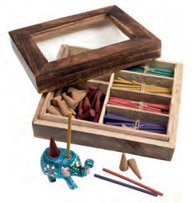 Handmade by Fair Trade producers. Includes ceramic holder, 5 x 10 sticks and 5 cones.