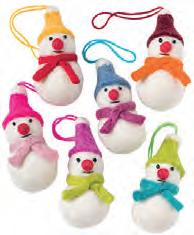 Pack of 6 felt hanging snowman decorations. Handmade in Nepal. H3cm. 531118 £12.95