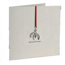 Square Christmas card made from recycled materials, with detachable cast pewter keepsake decoration, handmade in the UK. Envelope included. 14.5cm.