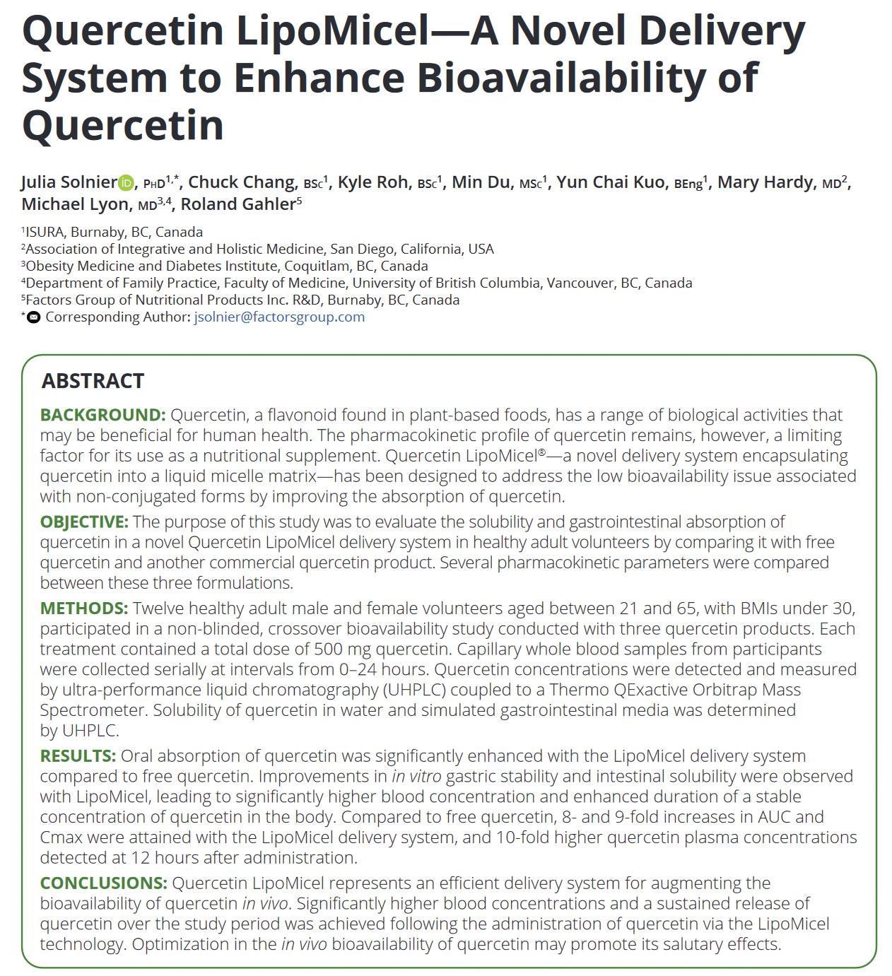 Researchers tested several forms of quercetin, and found they did not absorb well –except for LipoMicel quercetin. It performed up to 10x better than regular quercetin.