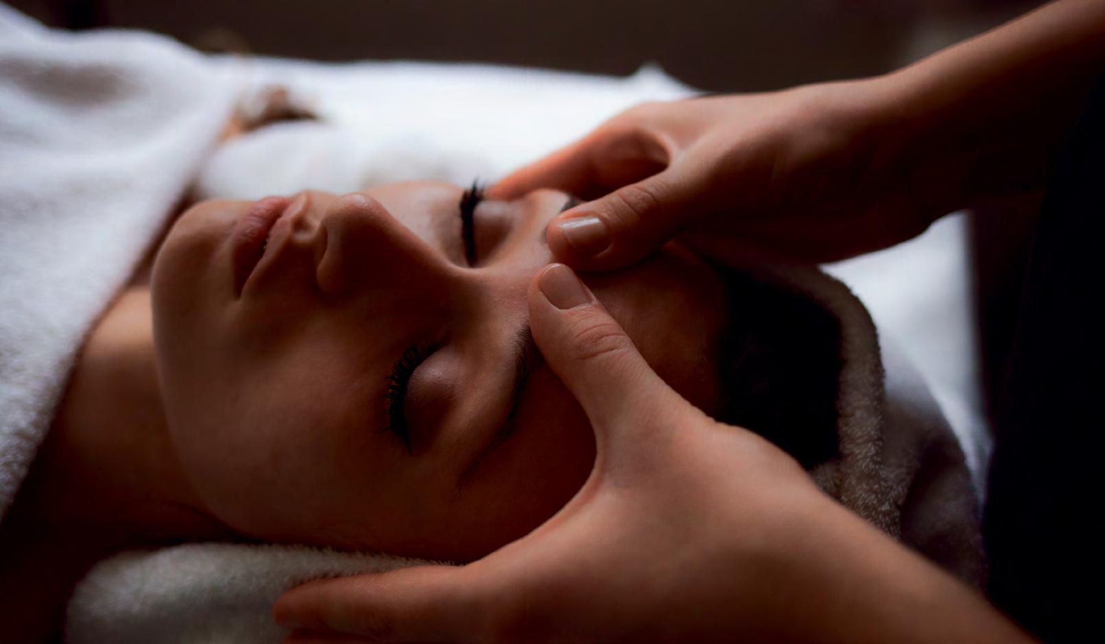 head, hands and arms, so it’s totally relaxing. This one is a brightening facial so all the products are made with fruit extracts - we get a lot of compliments about the gorgeous smells! It has a lymphatic drainage massage on the face and we use Japanese Gua Sha tools for that which sculpt to the contours of your face to release pressure and tension.