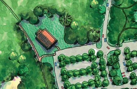 These three areas are indicated in the exhibit to the left on page 14. In the graphic, the limits of each area are delineated, the relative size of the three areas is demonstrated and the strong relationship between the park land and the lake is revealed. The existing Lake James State Park is located south of the new park land, just below the Canal Bridge.