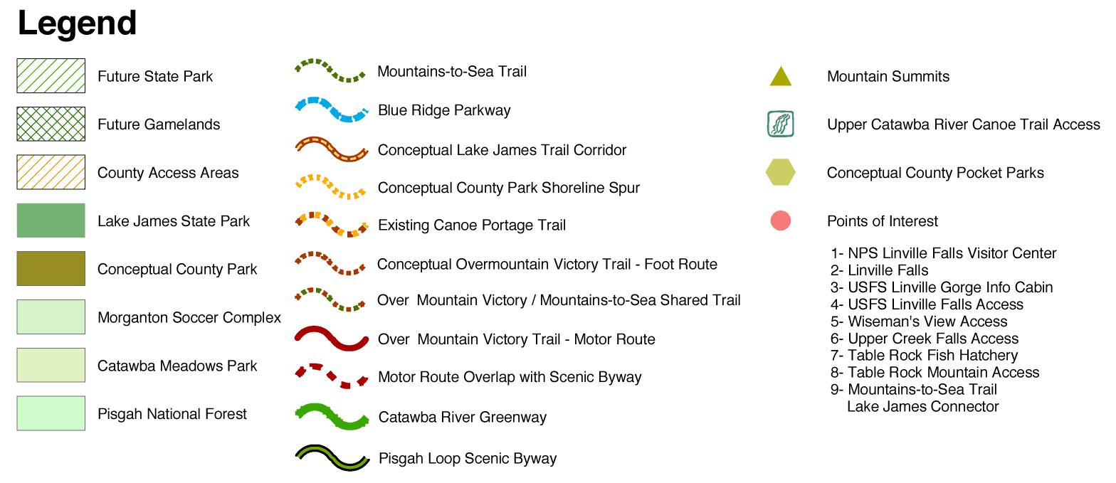 THE EXPANSION OF LAKE JAMES STATE PARK TO INCLUDE over 2,900 acres of newly acquired land was the culmination of two years of intensive planning discussions and a focused grass roots effort. The State, officials from Burke County and McDowell County, Crescent Resources, the local business and development communities, the Foothills Conservancy, the Citizens to Save Lake James, the Lake James Task Force, the Southern Environmental Law Center, Trout Unlimited and other conservation groups were all involved in creating this opportunity. One of the many goals of the park expansion effort was to increase the opportunity for the general public to access Lake James. With this acquisition, the communities surrounding Lake James have gained over 24 miles of shoreline with public access that will be preserved and protected for generations to come. The park expansion and its potential for increased access created the need for new initiatives in park planning and design.