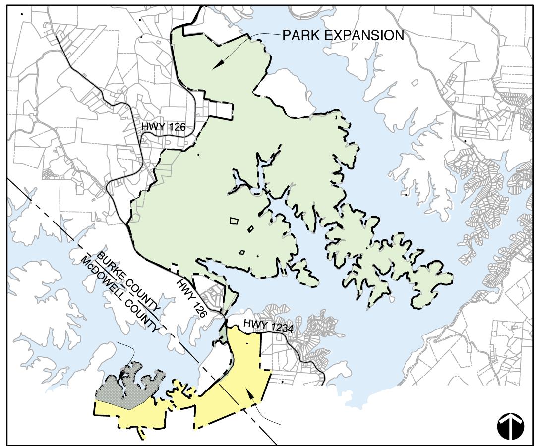 Lake James State Park (1) and the Park Expansion Property (2) IMAGE COURTESY OF BURKE COUNTY 1 2