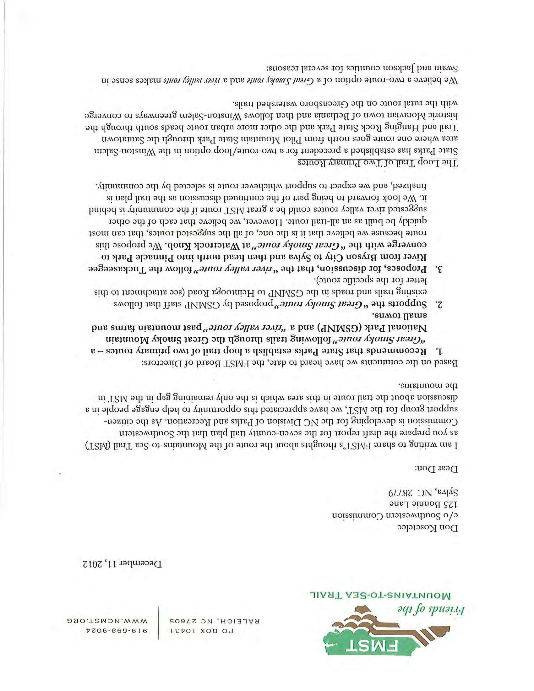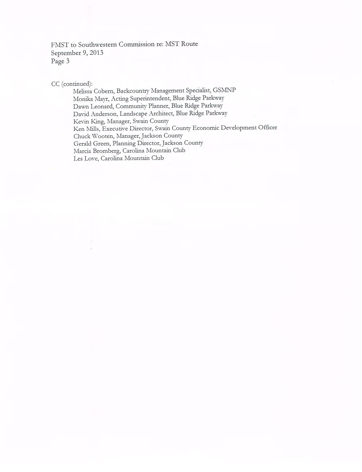 Re: Proposed Mountains-to-Sea Trail (MST) Routes from Great Smoky Mountains National Park to Balsam Gap