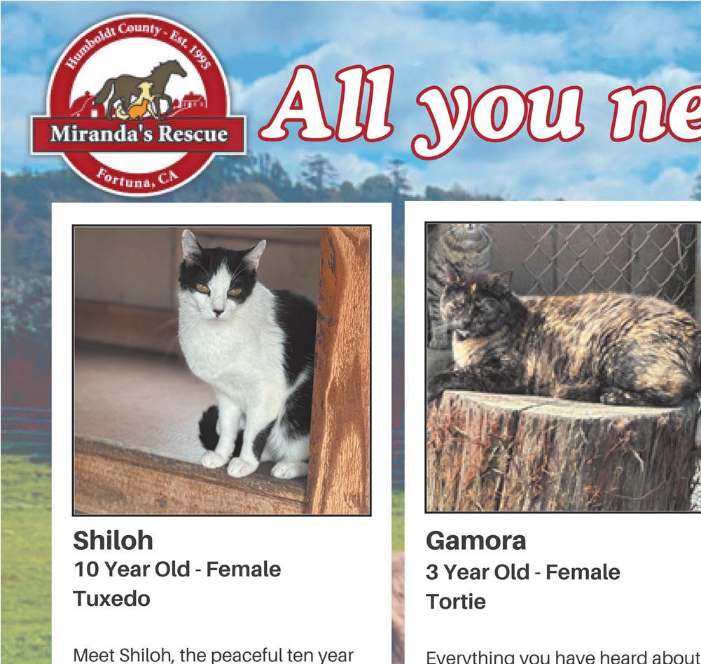 Miranda’s Rescue 1603 Sandy Prairie Road, Fortuna (707) 725-4449 mirandasrescue.org