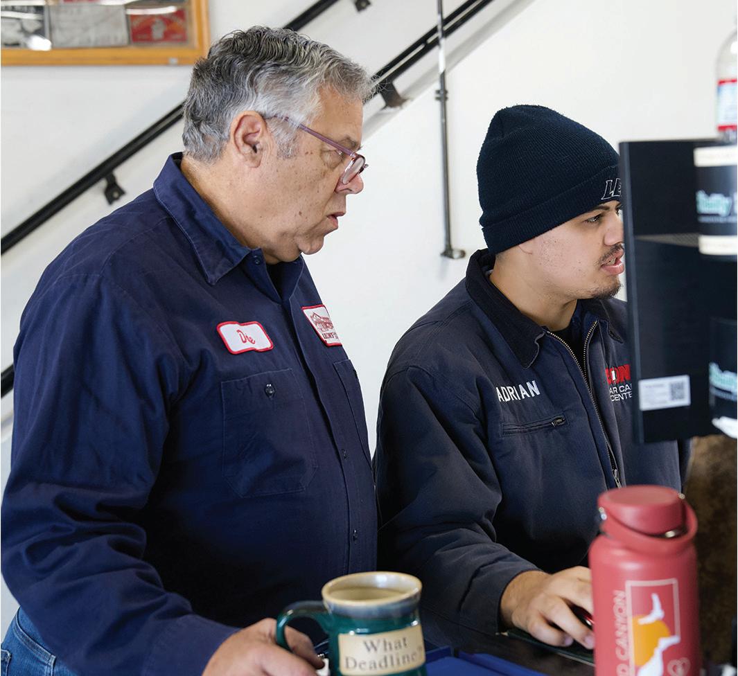 changing technology and Dale keeps his eyes on the road ahead. Expanding Leon’s beyond brakes and mufflers to full service kept the business viable. He is still looking to improve their chances for success. “We are qualified to repair EV and hybrids, too. Electrical batteries are not the end all.” He also looks to the possibilities of hybrids leading to hydrogen powered cars. That eyes-on-the-roadahead attitude has General Manager Dale, and Office Manager/Financial Officer Carrie dedicated to keeping the Warmuth family business running beyond their tenure. Dale’s nephew Luke Sams is the third generation to step into the bays. “Carrie and I are committed to preparing him to fully serve that third generation of ownership. This life is not forever, so don’t hold on so tight that you don’t give thought to passing it on,” he says. Luke is already co-owner, well on his way to assuring the