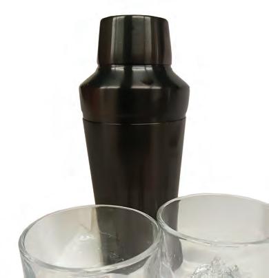 bell & hook Mountain Peak glassware, $17; black titanium shaker, $59