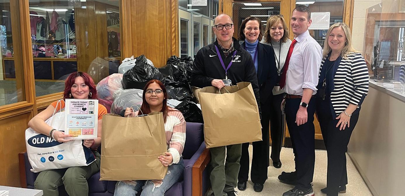 High School seniors Estefany Gonzalez and Anali Turcios Alvizures collected donations for the Long Island Coalition for the Homeless in Amityville for a civic readiness project. Photo courtesy of Islip School District