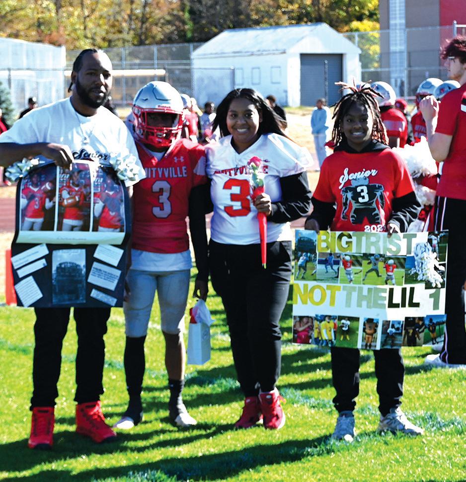On Nov. 2, Amityville Memorial High School held its Senior Day celebration for members of the varsity football team and the varsity cheerleaders. District and school administrators, board members, parents and community members joined the festivities at the high school before Amityville’s football game against Islip. Parents and family members decorated posters as they proudly walked with their seniors. Photos courtesy of Amityville Union Free School District