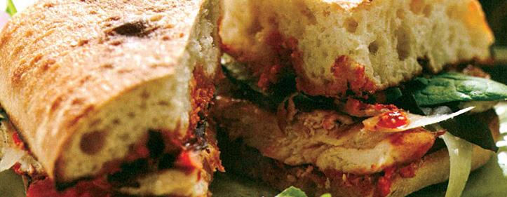 Grilled Chicken Ciabatta with Romesco and Baby Greens