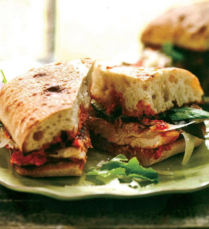 Thereturn of warm weather is synonymous with many things. For men and women who love to grill, spring marks a return to grilling their favorite foods and dining outdoors. Burgers and hot dogs may never go out of style, but plenty of additional foods can make for delicious grilled meals. Grilled chicken, for example, makes for a healthy meal the whole family can enjoy. Grilled chicken sandwiches, such as the following recipe for “Grilled Chicken Ciabatta with Romesco and Baby Greens” from Karen Adler and Judith Fertig’s “The Gardener & The Grill: The Bounty of the Garden Meets the Sizzle of the Grill” (Running Press), can make for a nice change of pace from more traditional grilling fare.