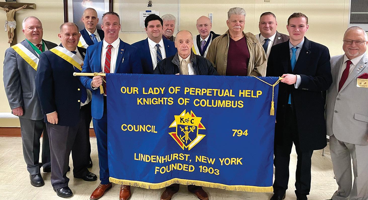 WELCOMING NEW KNIGHTS OF COLUMBUS MEMBERS - OLPH Knights of Columbus held a recent member exemplification and brought in seven new members: Town of Babylon Councilmen Anthony Manetta and Terence McSweeney, Village of Lindenhurst Superintendent of PW Rick Sorrentino, and Parishioners Aaron Liebowitz, John Lyons, and Joseph Lucisano. The team included: Presiding Officer Michael Hearney, Grand Knight Stephen Strigaro, Deputy GK Patrick Corcoran, Chancellor Carl Zoccalli, Trustees John Reynolds and Kevin Sabella Sr., and Warden Robert Salvia. Congratulations and thanks for supporting Lindenhurst Knights!