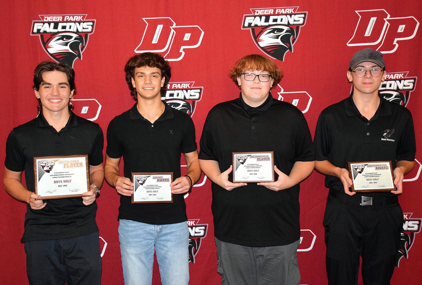 VARSITY GOLF TEAM MEMBERS - Deer Park High School varsity golf team members, from left, Michael Hodgkiss, Nicholas Fedrich, Joseph Linken and Dylan Rhodes received plaques for their exceptional accomplishments on the golf course this fall season.