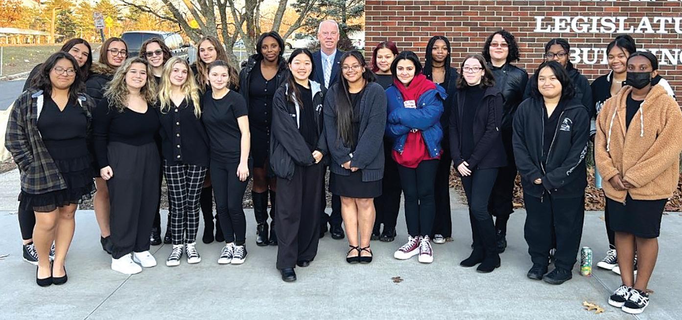 WOMEN’S CHOIR KICKS OFF COUNTY LEGISLATURE MEETING - The Deer Park High School Women’s Choir recently performed “The Star-Spangled Banner” at a start of a general meeting of the Suffolk County Legislature in Hauppauge. Photo courtesy of Deer Park School District