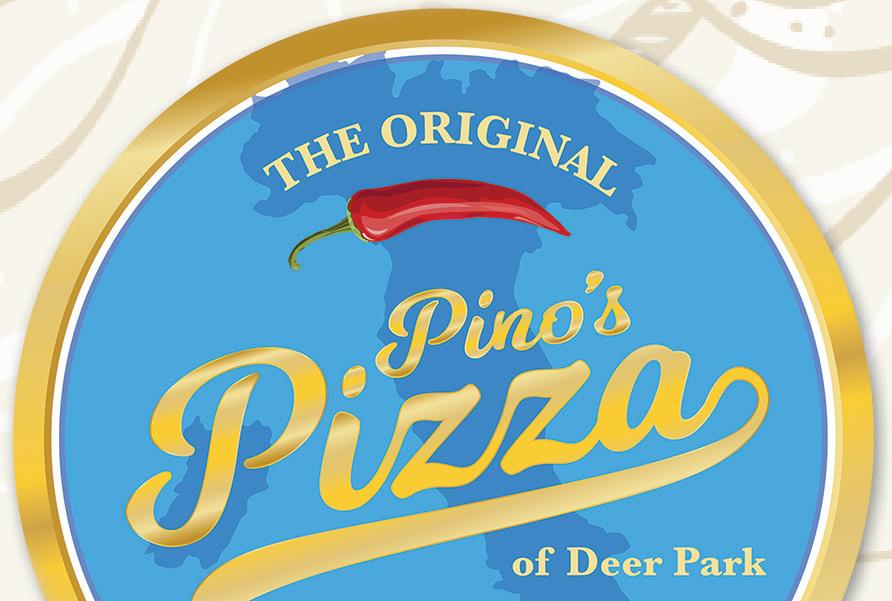 BACON RANCH WRAP......................... $13.40 ... $12.95 +TAX Wraps Includes Fries Heros CHICKEN PARMIGIANA .................................. $12.37 ... $11.95 +TAX EGGPLANT PARMIGIANA ................................ $12.37 ... $11.95 +TAX MEATBALL PARMIGIANA ................................ $12.37 ... $11.95 +TAX SAUSAGE & PEPPERS HERO ............................ $12.37 ... $11.50 +TAX SHRIMP PARMIGIANA.................................... $13.40 ... $12.95 +TAX CHICKEN FRANCESE ..................................... $13.40 ... $12.95 +TAX Includes Can of Soda or Water NOT RESPONSIBLE FOR TYPOGRAPHICAL ERRORS 1747 DEER PARK AVE., DEER PARK, NY 631-392-4496 @PinosPizzaDp DELIVERY • CURBSIDE PICK UP • TAKE OUT ORDER ONLINE WITH SLICE TACO TUESDAY SPECIAL “FLUFFYS PIE” (TACO PIZZA) Credit Card Credit Card Credit Card Credit Card Cash Cash Cash Cash $2499 $2586 Credit Card Cash MONDAY - THURSDAY PASTAONLY RIGATONI WITH SAUSAGE & BROCCOLI RABE SPAGHETTI WITH MEATBALLS • PENNE ALLA VODKA PENNE PRIMAVERA • RIGATONI BOLOGNESE FETTUCCINE ALFREDO • PENNE WITH BUTTER PENNE WITH BROCCOLI, GARLIC & OIL SPAGHETTI CACIO E PEPE • RIGATONI FLORENTINA $999 $1034 Credit Card Cash