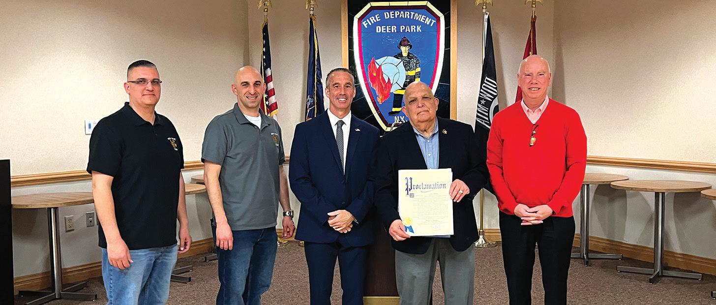 Senior of the Year, joined by Deer Park Fire Department (DPFD) First Assistant Chief Kenneth Rios, Chief Robert Macaluso and Town