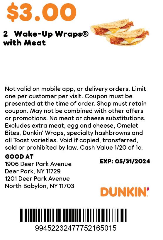 • Deer Park Library, 44 Lake Avenue, Deer Park: Friday, May 17, 9 – 11 am