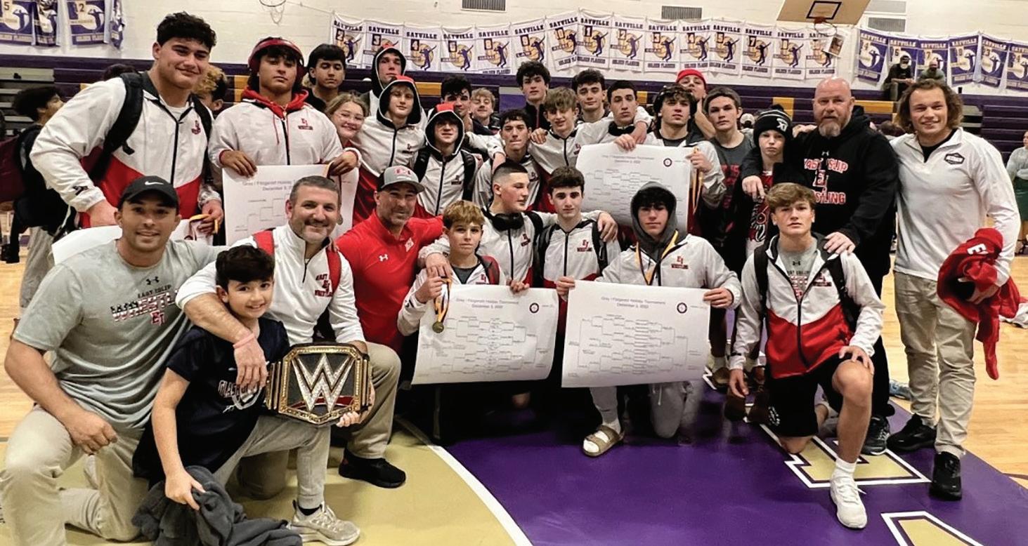 East Islip High School’s wrestling team outscored returning county champions Sayville and returning county dual meet champions Brentwood to capture the team title at the Gray/Fitzgerald Holiday Tournament on Dec. 3, as well as crowning five champions.