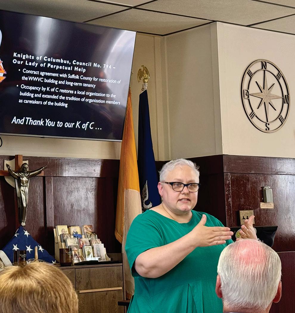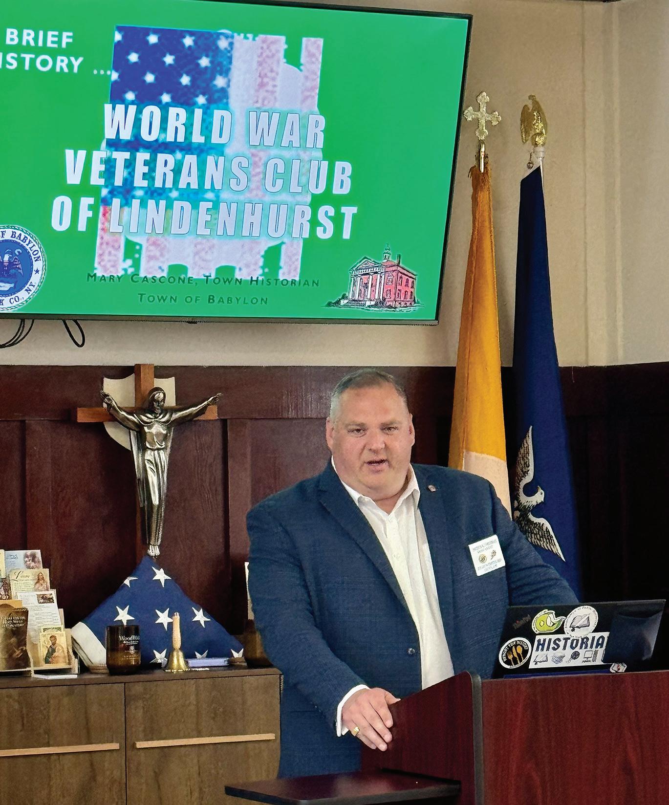 A spirited crowd recently gathered at the World War Veterans Club Hall to honor Lindenhurst’s military heritage at an event co-sponsored by the Town of Babylon and the OLPH Knights of Columbus Council #794. Town Historian Mary Cascone delivered a captivating lecture on the hall’s founding and its deep ties to the village’s wartime past.