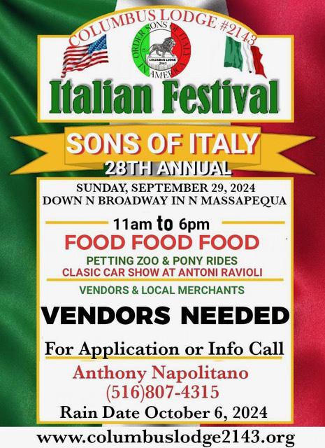 Grab your grass skirt & Hawaiian shirt. Brumidi Lodge, Deer Park is hosting a HAWAIIAN LUAU. Hawaiian Style Buffet Dinner, Slushies & soda included, Tiki Bar, Brumidi’s Famous Hawaiian Entertainment DJ Gene & Joanne Spinning in the Music Hut. Raffles & Much More Summer Fun For tickets and more information, please call Anita 631-422-6914. Sons & Daughters of Italy in America 2075 Deer Park Ave., Deer Park.