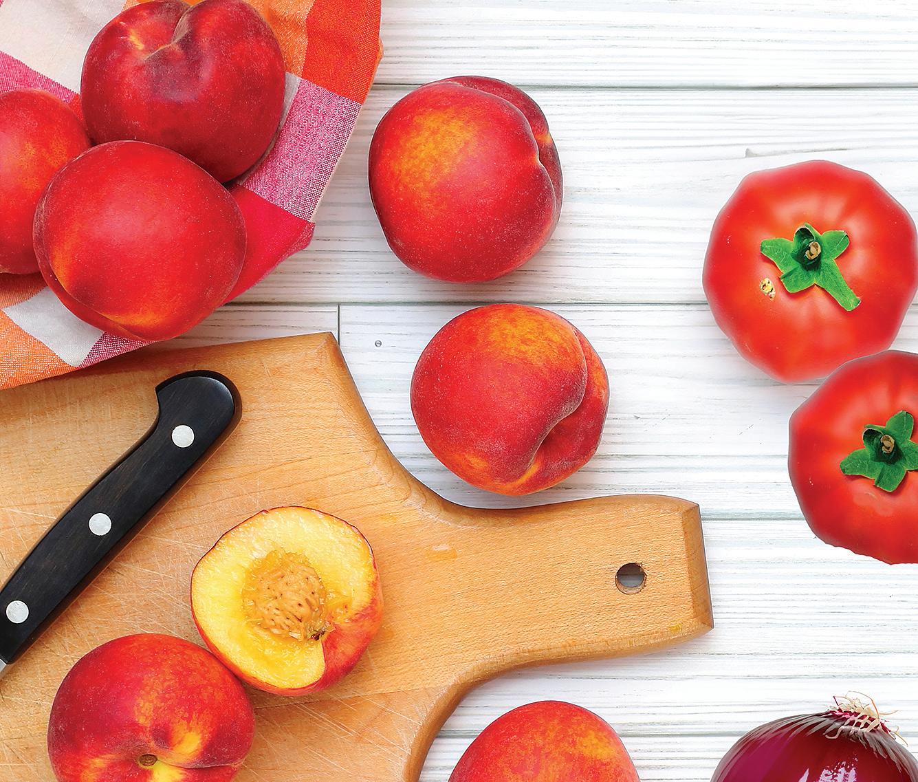 Even as summer winds down, there tends to be plenty of time to reap the rewards of backyard gardens and warmweather entertaining. Refreshing salads are favored at such gatherings, and the interesting pairing of peaches and tomatoes makes the most of these fruits when they’re at their peak. Sweet and savory flavors combine in this recipe for “Peachy Tomato Salad” courtesy of “The Mediterranean Diet Cookbook” (Rockridge University Press). This delicious side pairs best with grilled fare.