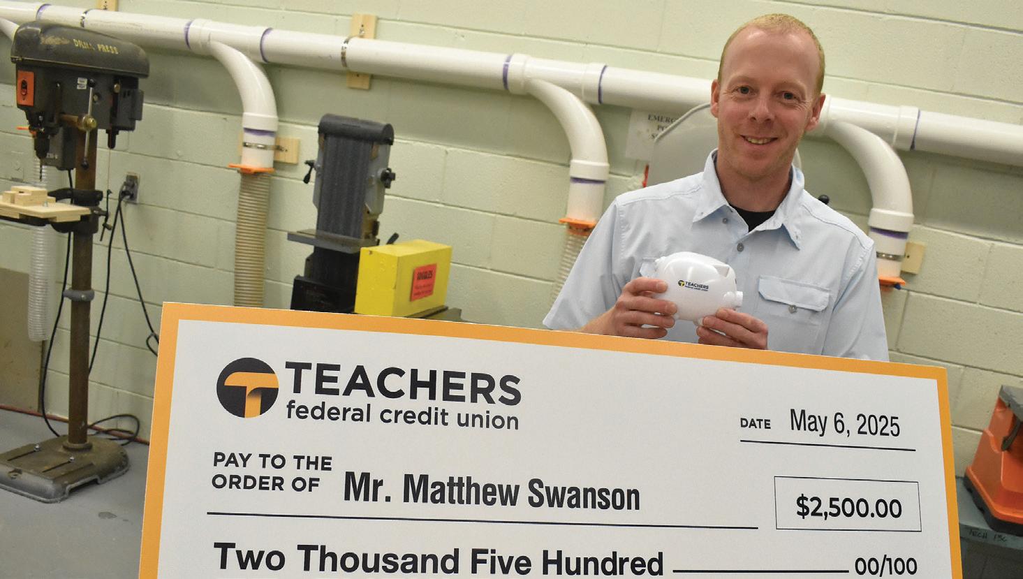 Massapequa School District technology education teacher Matthew Swanson won first place in the annual Teacher Appreciation Week Contest, sponsored by Teacher’s Federal Credit Union. As the top winner in the grades 6-8 division, he received a $2,500 prize and a bunch of swag for his students.