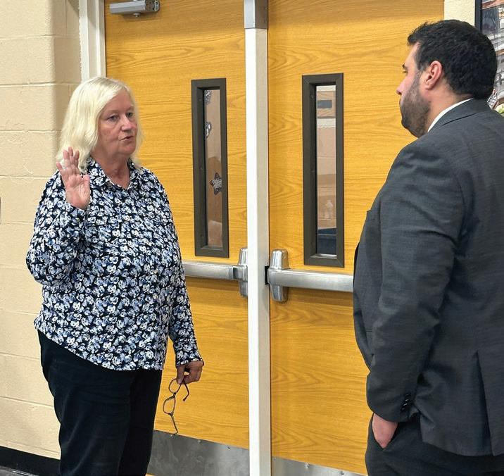 Returning Trustee Mary Ellen Cunningham is sworn in after winning reelection.