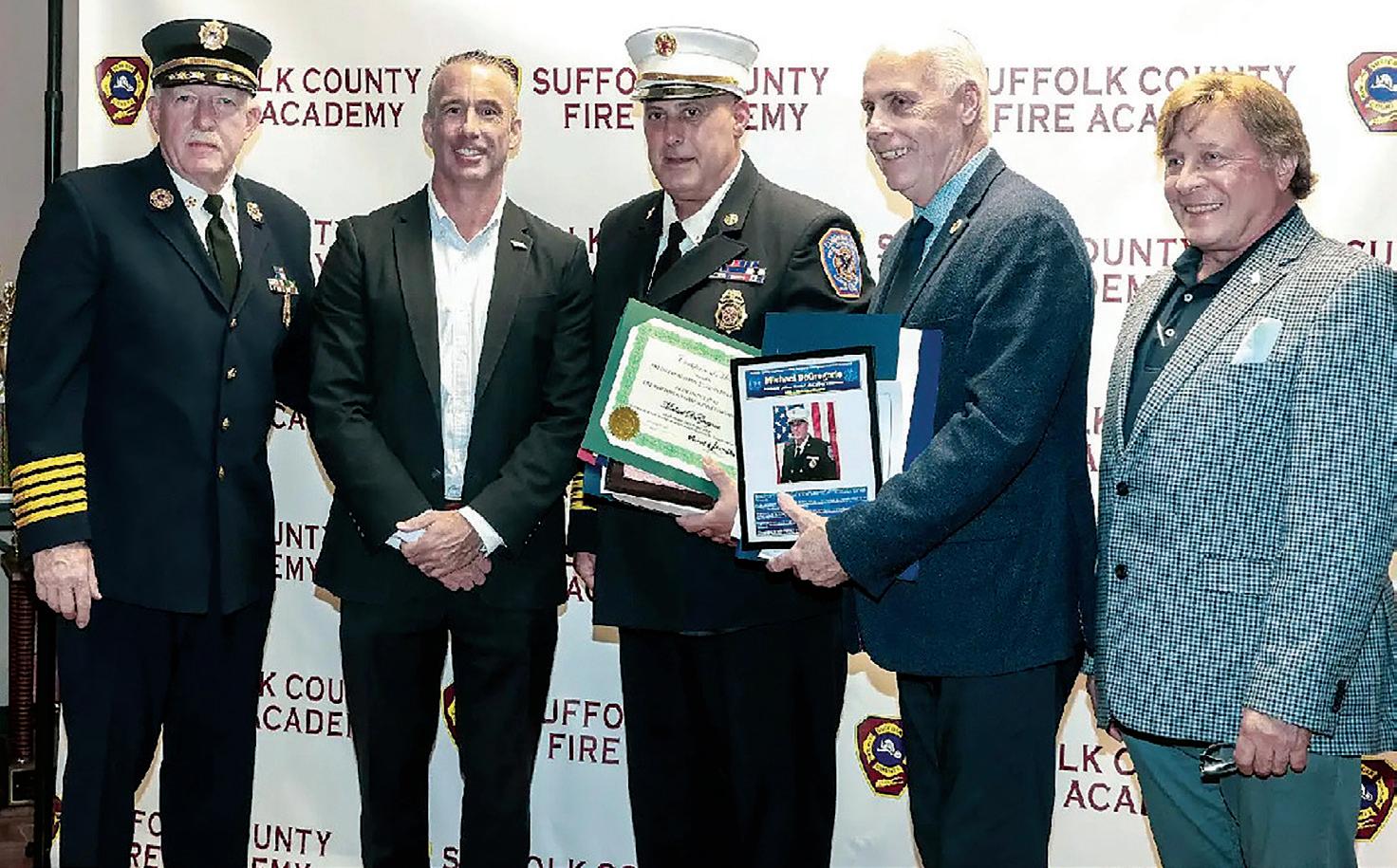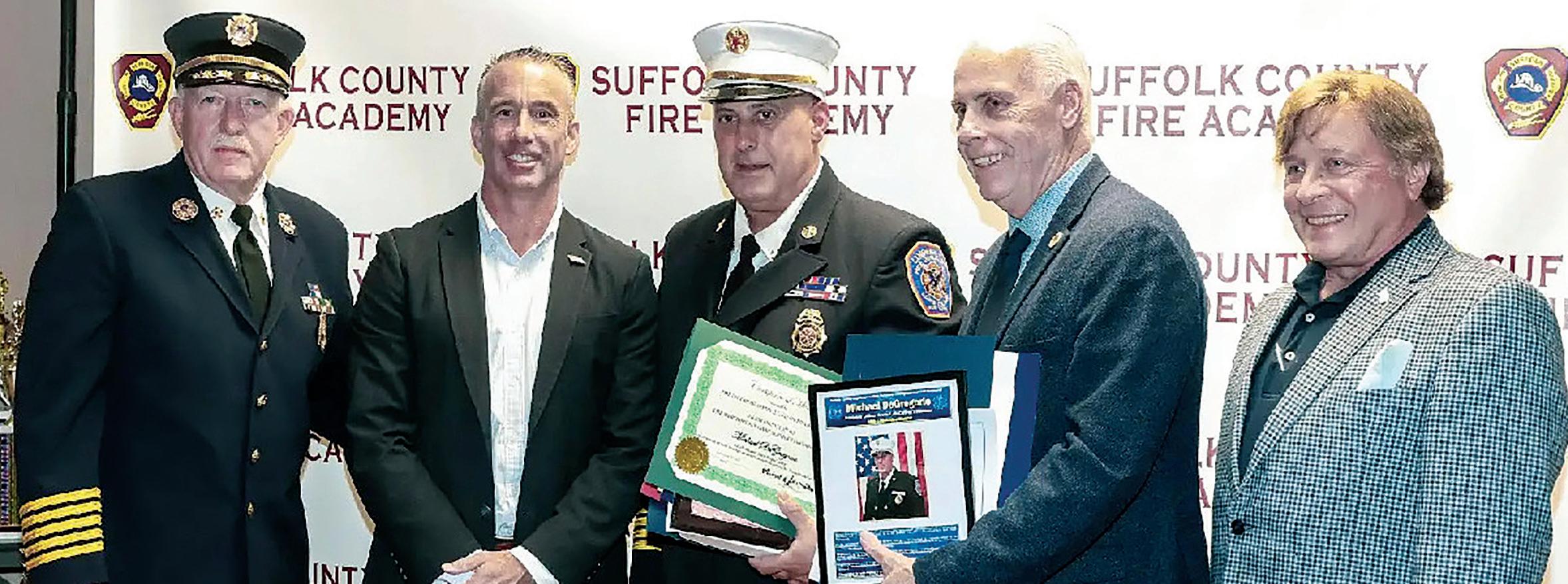 LINDENHURST’S MICHAEL DEGREGORIO HONORED - During their medal day ceremony, the Babylon town board took time to congratulate Mike DeGregorio, exchief of the Lindenhurst Fire dept, for his award from the Suffolk County Fire Academy. Councilman Terence McSweeney congratulated Chief DeGregorio, highlighting the immense value he brings to the Lindenhurst and Town of Babylon community. McSweeney emphasized that the community is fortunate to have someone like Mike, whose knowledge and experience allowed him to save a young man’s life and avert a senseless tragedy. As the public safety chairman, Councilman McSweeney conveyed on behalf of the entire town board his deepest gratitude to Chief DeGregorio for being in the right place at the right time. The town board and the Town of Babylon are immensely grateful for Chief DeGregorio’s heroic actions.