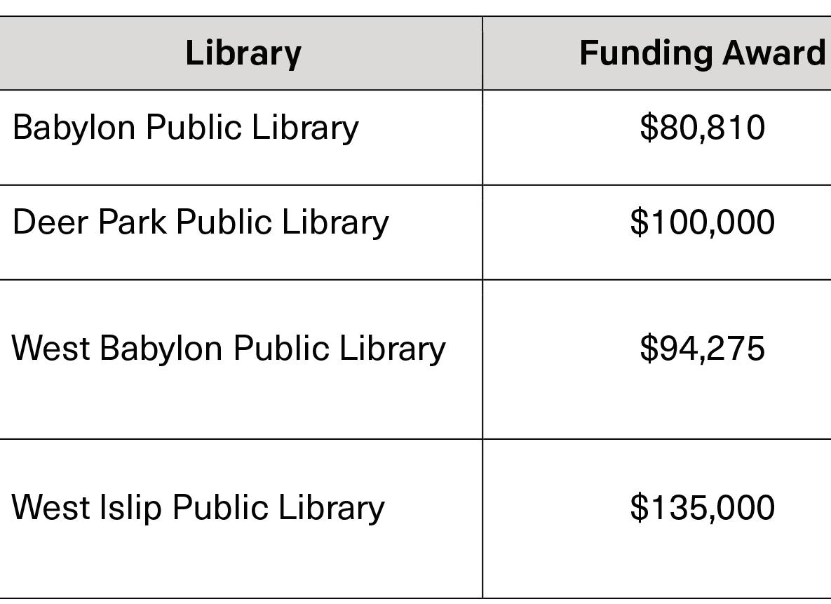 Several libraries serving the New York State Senate’s Fourth Senatorial District will soon be turning a new page as they improve their facilities to better serve patrons. State Sen. Monica R. Martinez announced today that the Babylon, Deer Park, West Babylon, and West Islip public libraries have been awarded more than $410,000 through the State Aid for Library