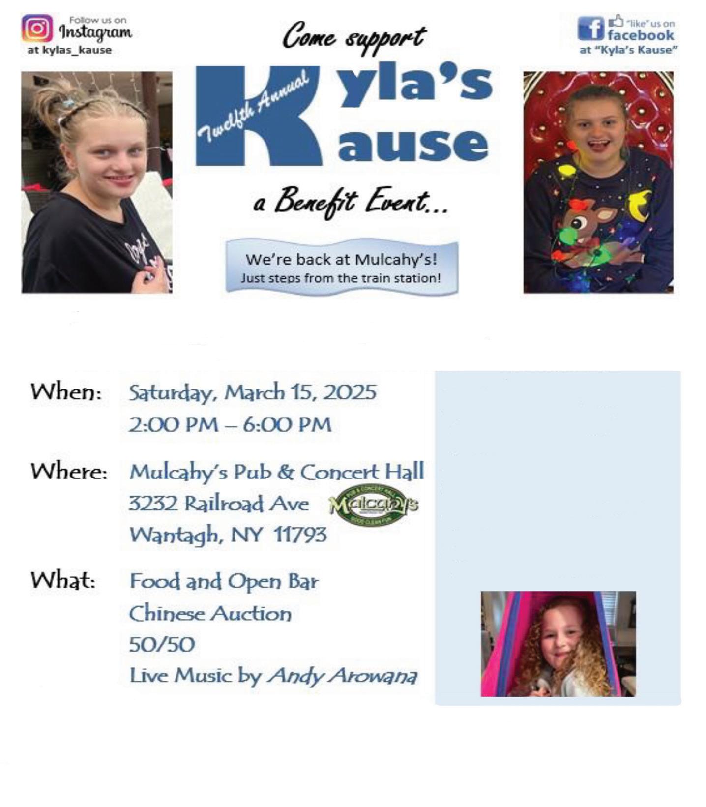 The Seaford Historical Society will host a fundraiser, Music Bingo, at the museum. The event is $25 per person, which includes 2 bingo cards. There will be raffles, door prize and a 50/50. Coffee and water will be available. The museum is located at 3890 Waverly Ave. in Seaford. Tickets can be purchased at their website seafordhistoricalsociety.org/ music-bingo. Seating is limited. For more information, please call Judy Bongiovi at 516-783-8629