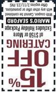 7 MASSAPEQUA PARKSOUTH BAY’S NEIGHBOR NEWSPAPERS WEDNESDAY, APRIL 26, 2023 • WWW.LONGISLANDMEDIAGROUP.COM 1 DOZEN GARLIC KNOTS PASTA DAY Complete Dinners 40 Choices of Pasta Includes: House Salad, Giovanni’s Fresh Garlic Knots, NY Cheesecake & Coffee or Tea Only With Purchase Of Large Pie Specialty Pies Not Included. Not to be combined with any other special. Valid Every Day Except Friday. With Coupon. Expires 5/3/23 Per Person No Coupon Necessary NO CHEESECAKE ON “TO GO” ORDERS $1895 COUPON WEDNESDAY Free Not to be combined with any other special. Expires 5/3/23 No Coupon Necessary Not to be combined with any other special. Expires 5/3/23 Per Person Take Out Only Take Out Only $2 OFF GRANDMA OR SICILIAN PIE LARGE REGULAR PIE MONDAY CHICKEN DAY CHOICE OF: Includes:Spaghetti,HouseSalad, GarlicKnots,NYCheesecake& Coffee or Tea CHICKEN CACCIATORE CHICKEN FRANCESE CHICKEN MUSHROOMS CHICKEN MARSALA GRILLED BREAST VODKA GRILLED CHICKEN BREAST CHICKEN PARMIGIANA CHICKEN PUTTANESCA CHICKEN PICCATA CHICKEN SCARPARIELLO $200 $2295 COUPON COUPON THURSDAY’S SPECIAL TUESDAY’S SPECIAL 410697N042623 All other dishes available in trays upon request. Bread or Garlic Knots included with trays. Deposit required on all orders. Tax additional. Giovanni Catering OFF NO CHEESECAKE ON “TO GO” ORDERS HALF TRAY FULL TRAY GLUTEN FREE PIZZA & PASTA NOW SERVING ROOM AVAILABLE FOR GRADUATIONS, BIRTHDAYS, SHOWERS, ANNIVERSARIES, AND ALL SPECIAL OCCASIONS (UP TO 50 PEOPLE) HOUSE SALAD 38.00 60.00 GREEK SALAD 48.00 80.00 CAESAR SALAD 43.00 70.00 CHICKEN FINGERS 43.00 80.00 FRESH MOZZARELLA & TOMATO 51.00 95.00 BROCCOLI RABE & SAUSAGE 61.00 110.00 BAKED CLAMS 56.00 100.00 FRIED CALAMARI 56.00 100.00 SWEET CHILI CALAMARI 56.00 100.00 COLD ANTIPASTO 51.00 85.00 MEATBALLS IN TOMATO SAUCE 51.00 100.00 SAUSAGE IN TOMATO SAUCE 51.00 100.00 PENNE ALA VODKA 56.00 100.00 STUFFED SHELLS 56.00 100.00 LASAGNA 61.00 110.00 PENNE WITH BROCCOLI AND CHICKEN 56.00 100.00 LINGUINE WITH WHITE CLAM SAUCE 61.00 110.00 LINGUINE WITH RED CLAM SAUCE 61.00 110.00 BAKED ZITI 56.00 100.00 PENNE ANTIONIO 61.00 110.00 SAUSAGE & PEPPER PIZZAIOLA 61.00 110.00 MUSSELS MARINARA 51.00 90.00 CALAMARI MARINARA 66.00 120.00 CHICKEN MARSALA 66.00 110.00 CHICKEN PARMIGIANA 66.00 110.00 CHICKEN FRANCAISE 66.00 110.00 CHICKEN GIOVANNI 71.00 130.00 CHICKEN CACCIATORE (BONELESS) 66.00 115.00 EGGPLANT PARMIGIANA 61.00 110.00 EGGPLANT ROLLATINE 61.00 110.00 VEAL CUTLET PARMIGIANA 71.00 130.00 VEAL SCALLOPINE PIZZAIOLA 71.00 130.00 VEAL MARSALA 71.00 130.00 VEAL GIOVANNI 76.00 140.00 SHRIMP PARMIGIANA 86.00 160.00 SHRIMP SCAMPI 86.00 160.00 WWW.GIOVANNISOFMASSAPEQUANY.COM 5612 MERRICK ROAD, MASSAPEQUA Across From Lidl Supermarket (516)799-7326 • (516)798-5217 Open Mon.-Thurs. 11am-10pm; Fri. & Sat. 11am-11pm, Sun. 12 Noon - 10pm Visit Us At www.GustoDivinoNY.com For Weekly Specials, Online Orders & Rewards, & To View Our Complete Menu And All Party Packages. Italian Cuisine 3930 Sunrise Highway, Seaford 516-795-1929 • 516-795-3623 Open 6 Days For Lunch & Dinner Tuesday - Saturday 12pm-10pm • Sunday 12pm-9pm • Closed Mondays Cash Only. Not Valid On Saturdays & Holidays. Cannot Be Combined With Any Other Offers • Expires 9/30/23. $10 OFF Any Guest Check Of $100 Or More Join Us For A Delicious Mother’s Day 4 Course Prixe Fixe Menu Local Delivery Available 391083AN042623 INDOOR & OUTDOOR HEATED DINING & CATERING ROOMS AVAILABLE, EACH ACCOMMODATING UP TO 100 PEOPLE F U E L STEVEN P. CARROLL INC. FUEL OIL Full Service Quality at Low COD Prices 516-795-4638 • 516-799-5465 A Local Massapequa Company LOW PRICES ON C.O.D. Home Heating Oil EXPERT Oil Burner Service Licensed & Insured 344456N042623