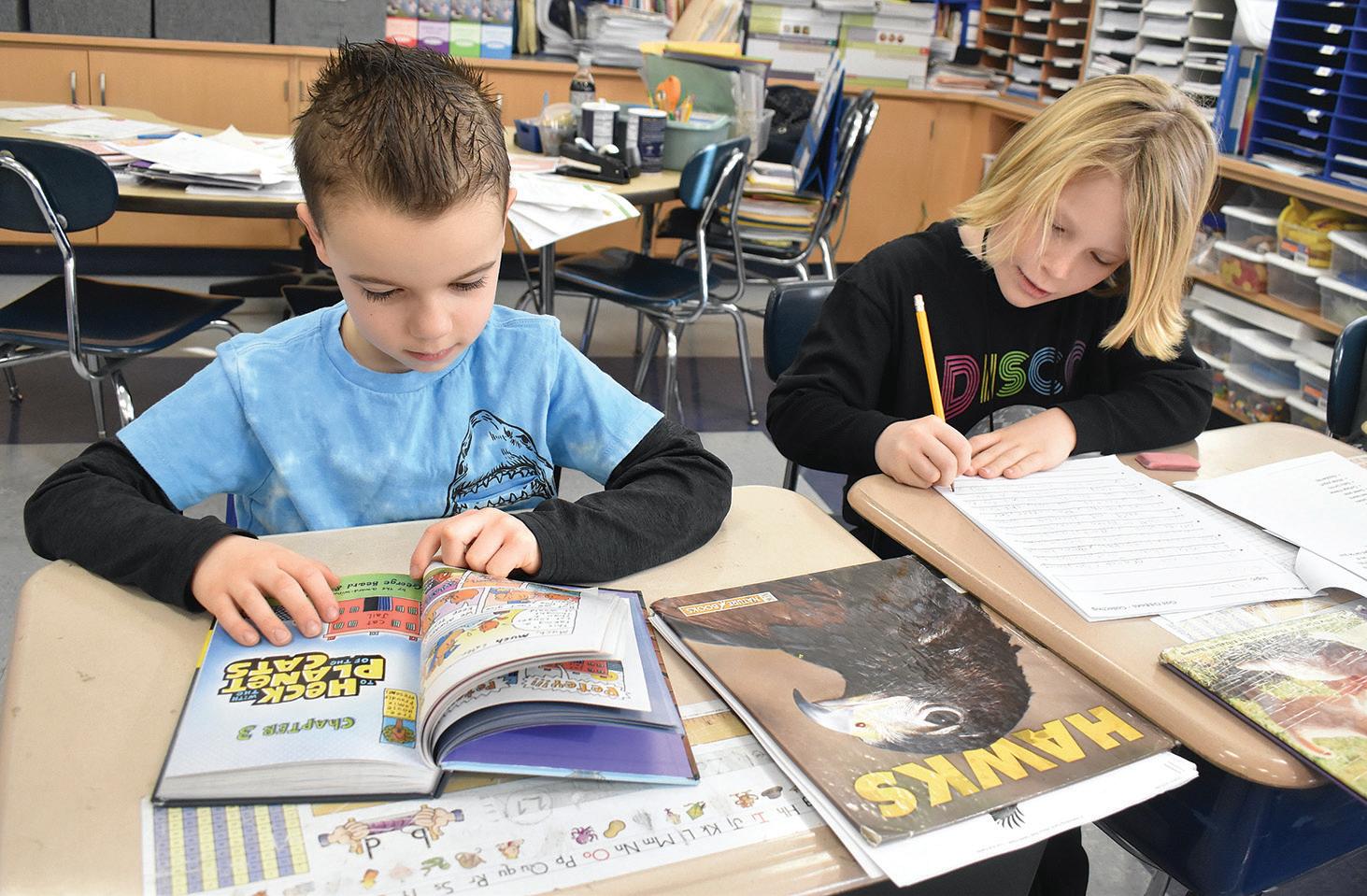 Classroom activities supported good reading habits. Christine Marshall’s second graders read through books and online resources to gather information for nonfiction research projects on topics of their choice.