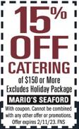 32 NORTH MASSAPEQUASOUTH BAY’S NEIGHBOR NEWSPAPERSWEDNESDAY MARCH 1, 2023 • WWW.LONGISLANDMEDIAGROUP.COM PIZZERIA • RESTAURANT 1031 Route 109 East Farmingdale (In The Meat Farms Shopping Center) 777-1677 631 or 516 15% OFF Catering Order of $100 or More With Coupon Only Not Valid WIth Any Other Coupon or Offer SB CATERING FORAVAILABLE ANY PARTYSIZE HELP WANTED INQUIRE WITHIN Let Us Cater Your Next Special Occasion So You Can Enjoy Your Guests! Entertaining is hard enough without having to cook all day. We will deliver & set up all your entrees for your guests to enjoy. View Our Website for our Complete Catering Menu $200 OFF Any Pizza (Excludes Piazzettas) Pick-Up Only • With Coupon Only Not Valid WIth Any Other Coupon or Offer SB 15% OFF Dine-In Or Take-Out (Excludes Pizza or Counter Items) With Coupon Only Not Valid WIth Any Other Coupon or Offer SB $1749 Wednesday Only Regular, Sicilian or Grandma Pie Pick-Up or Delivery • No Coupon Necessary Not Valid WIth Any Other Offers SB +tax FREE DELIVERY ASK ABOUT OUR LENT SPECIALS WE DELIVER TO FARMINGDALE, BETHPAGE, MASSAPEQUA, AMITYVILLE, COPIAGUE, MELVILLE & WEST BABYLON 409182N030123 WE ARE OPEN DURING SHOPPING CENTER EXTERIOR CONSTRUCTION & IMPROVEMENTS
