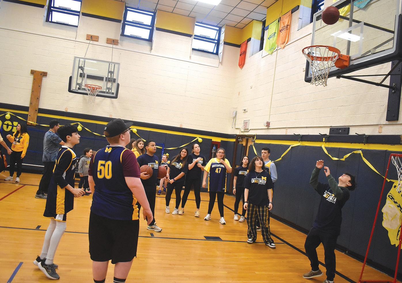 A crowd upwards of 350 people enthusiastically cheered on the Massapequa High School Ames Campus Challenger basketball team on March 7 and also honored a beloved student.