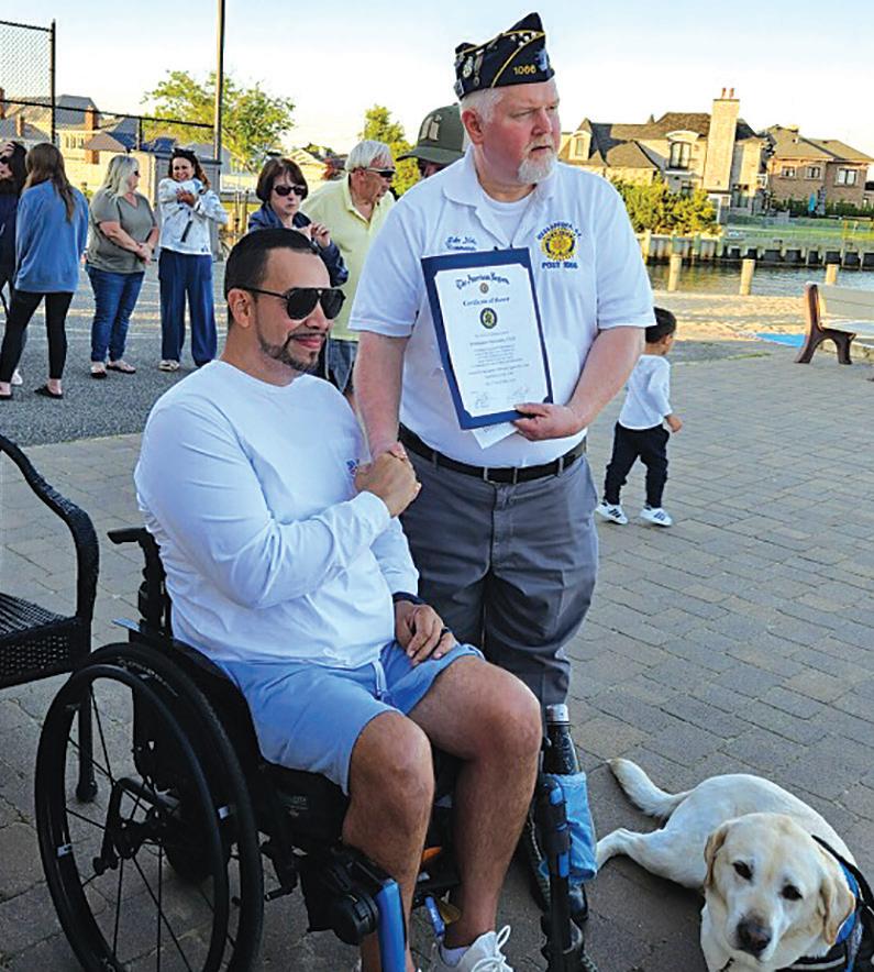 Massapequa American Legion Post 1066 Commander John J. Nolan, III presenting Citation to Ken Hernandez.