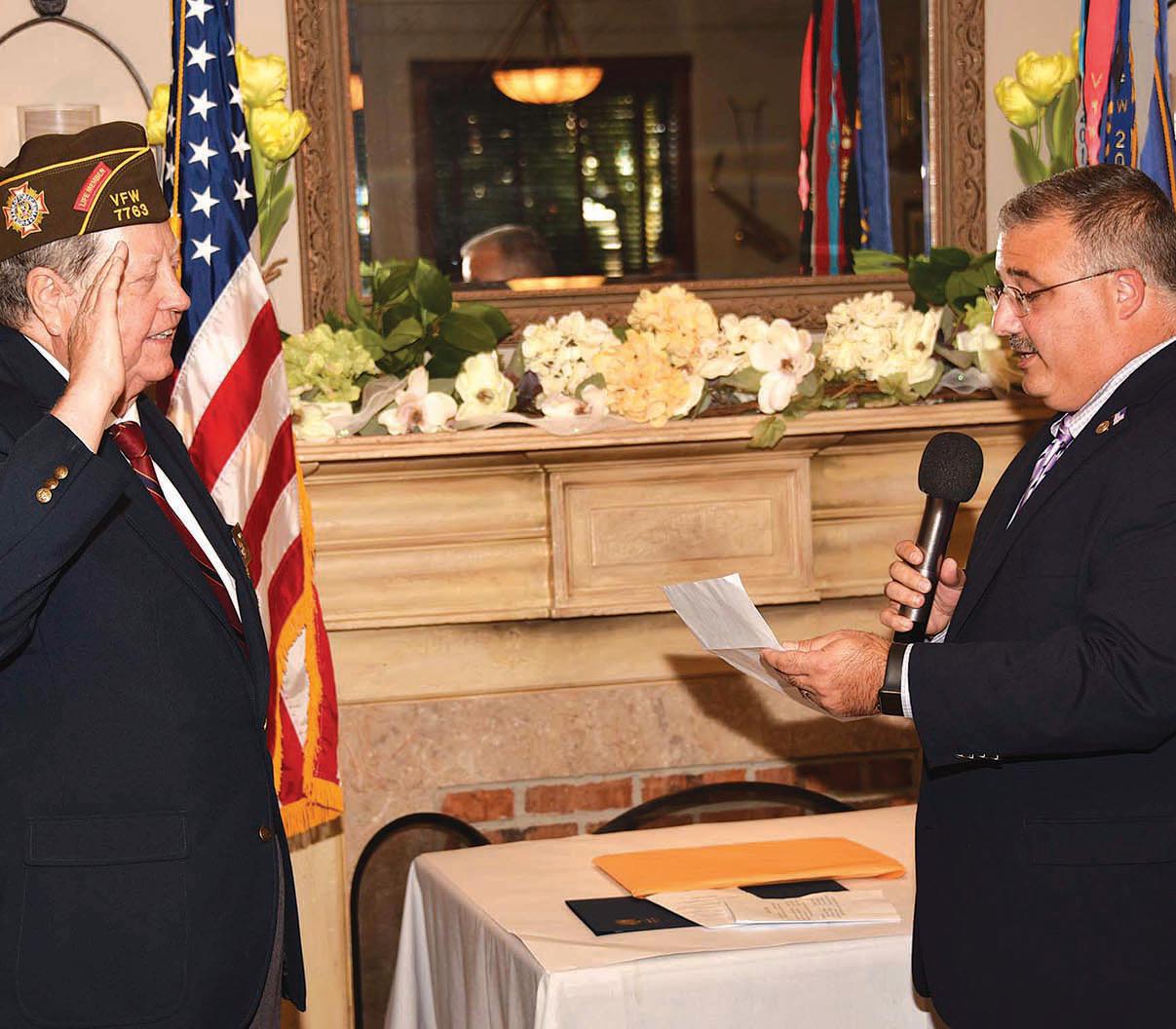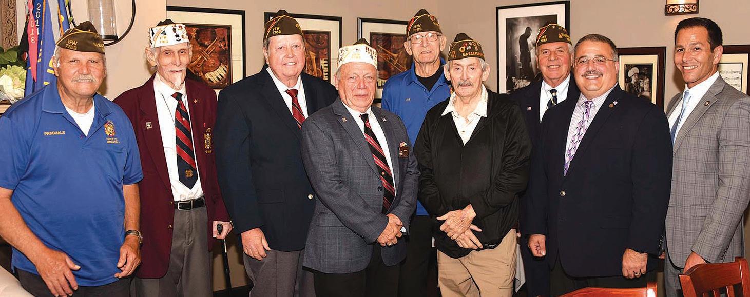 The 2023-2024 elected officers of the Veterans of Foreign Wars, Sgt. Peter F. Colleran, Jr. Post 7763 Massapequa Park were recently sworn in at the Commander’s Dinner and Installation Ceremony. Pictured: Pasquale DiMonda, Trustee - Rich Magee, Trustee - Matthew “Bill” Gorman, Commander - Artie Krumm, Quartermaster, Artie Baldwin, Trustee - Bob Duffy, Senior Vice Commander - Vic Crespo, Junior Vice Commander, Danny Pearl, Mayor - Mike Durso, Assemblyman.