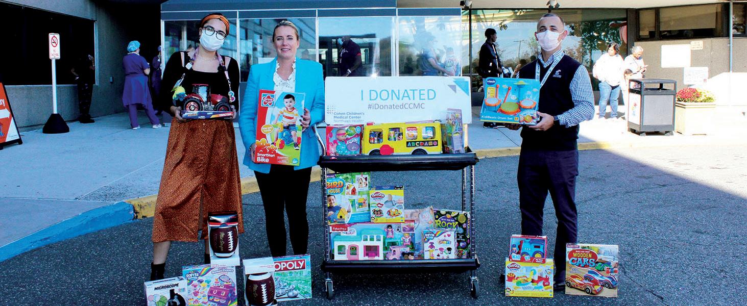 TOY DONATION - Oyster Bay Town Councilwoman Laura Maier recently delivered five pallets filled with toys to Cohen Children’s Medical Center, collected by the Town in cooperation with the United States Marine Corps Toys for Tots program. Pictured: Councilwoman Maier (center) with Demi Lonergan and Venhar Burani of Cohen Children’s Medical Center. Donation boxes have been set up at Town facilities, and the Town will also host the largest