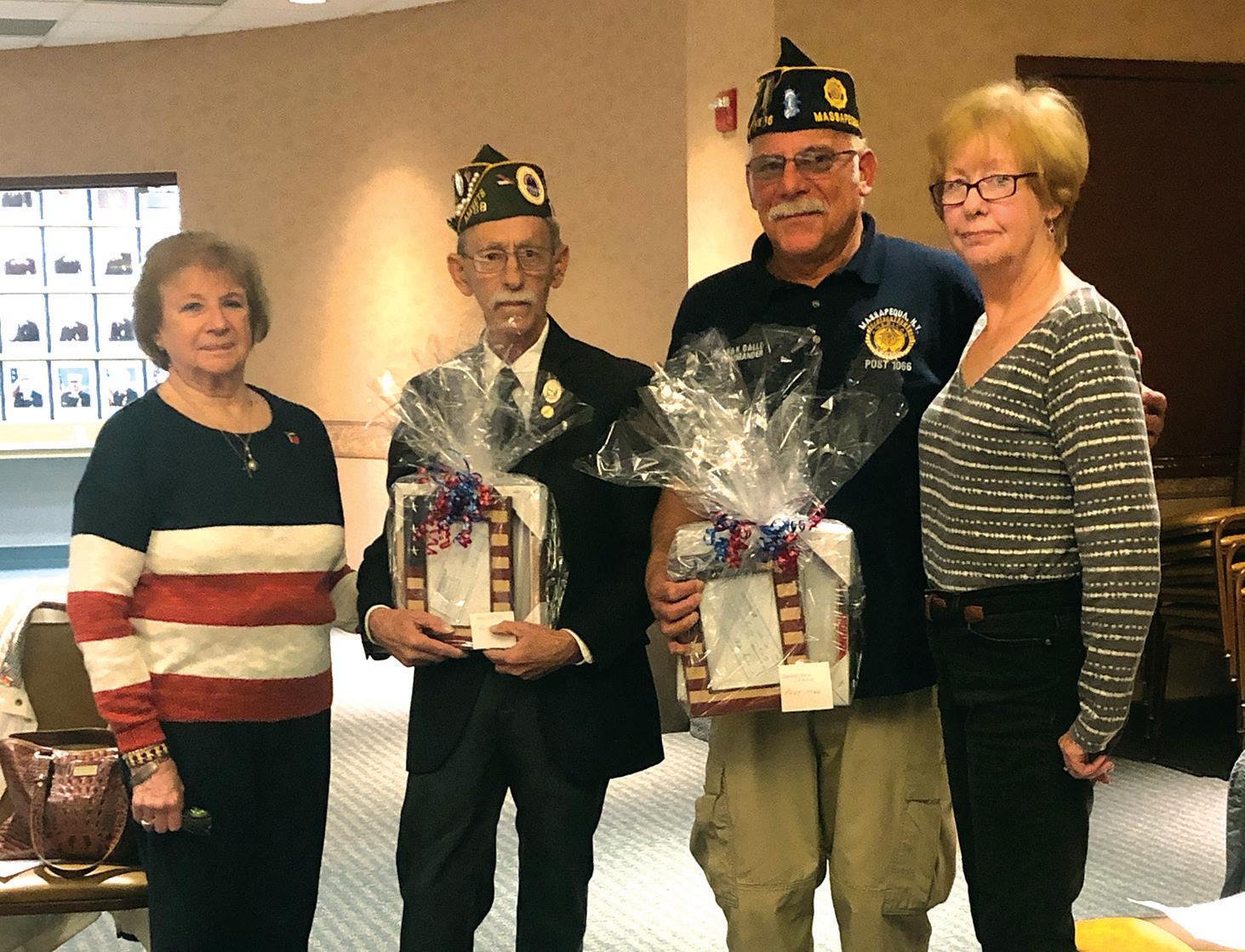 presented donations to Dean J. Gallo, Commander of American Legion Post 1066, and Leonard E. Scheiner, Past Commander of AmVets Post 88, at their November 3rd Auxiliary Meeting. The meeting took place in the George Beato room at the Massapequa Fire Department on Hicksville Road. They will also present two additional donations to the VFW Post 7277 and the VFW Post 7763. They were both unable to attend the meeting.