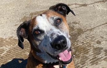CAROLINE 7 year old Terrier mix. Good natured and affectionate girl. The star of the month.