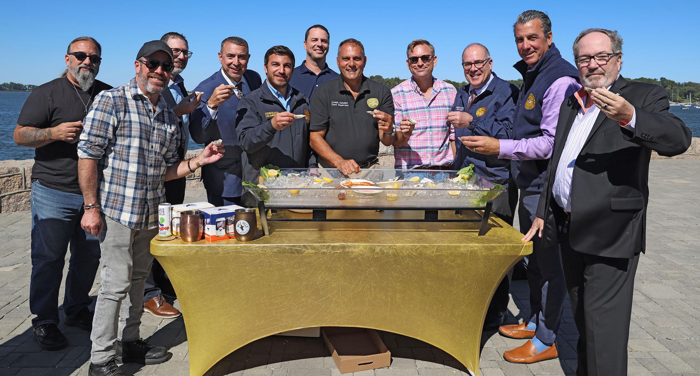 The East Coast’s largest waterfront festival will return this fall to the streets of Oyster Bay. Supervisor Joseph Saladino, his colleagues on the Town Board and organizers and sponsors of the 42nd Oyster Fest announced the return of the iconic seaside festival this October 18th and 19th. Supervisor Saladino, together with Councilman Lou Imbroto, Town Clerk Rich LaMarca and Receiver Jeff Pravato; Oyster Fest partner the Oyster Bay-East Norwich Chamber of Commerce and several sponsors made the announcement along the waterfront at Theodore Roosevelt Memorial Park.